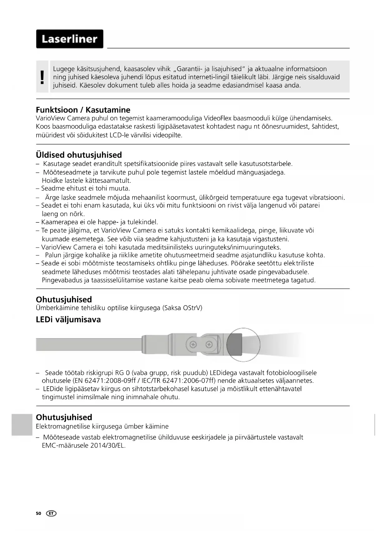 - VarioView Camera ei tohi kasutada meditsinilisteks uuringuteks/inimuuringuteks.