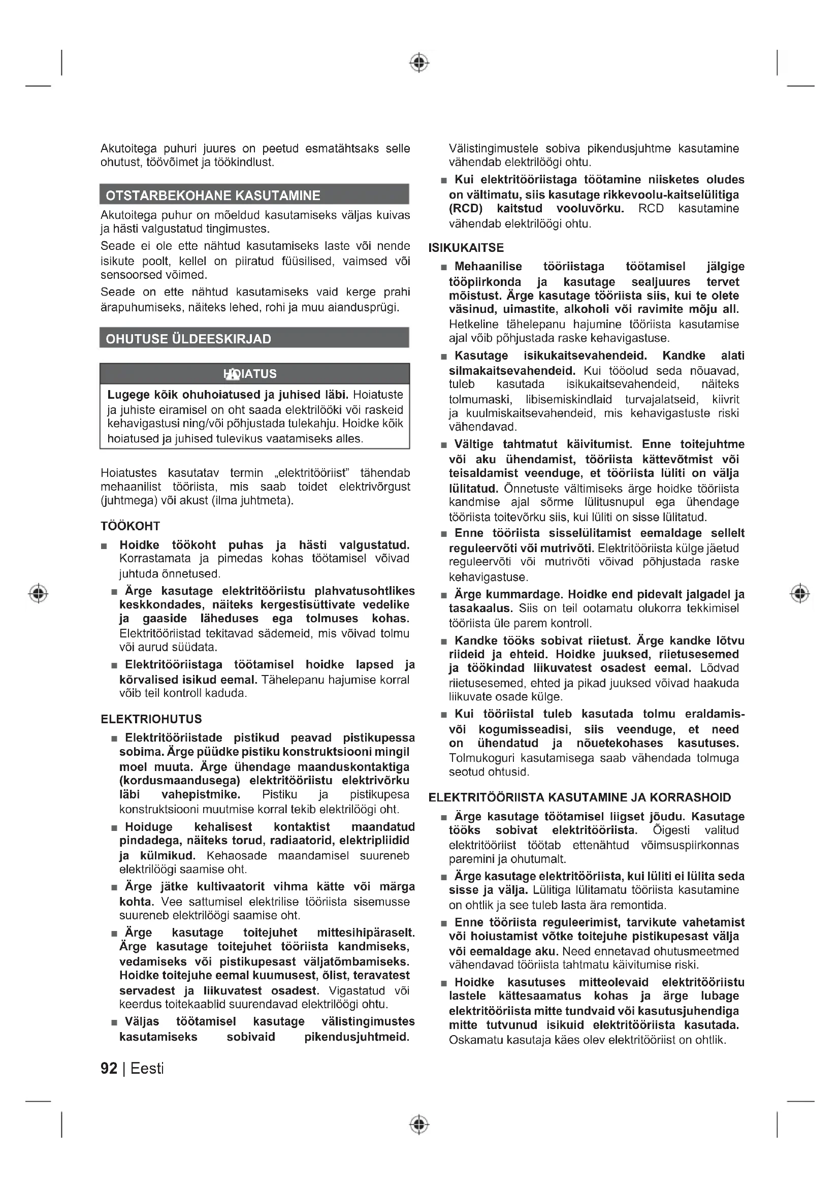 ELEKTRITÖÖRIISTA KASUTAMINE JA KORRASHOID