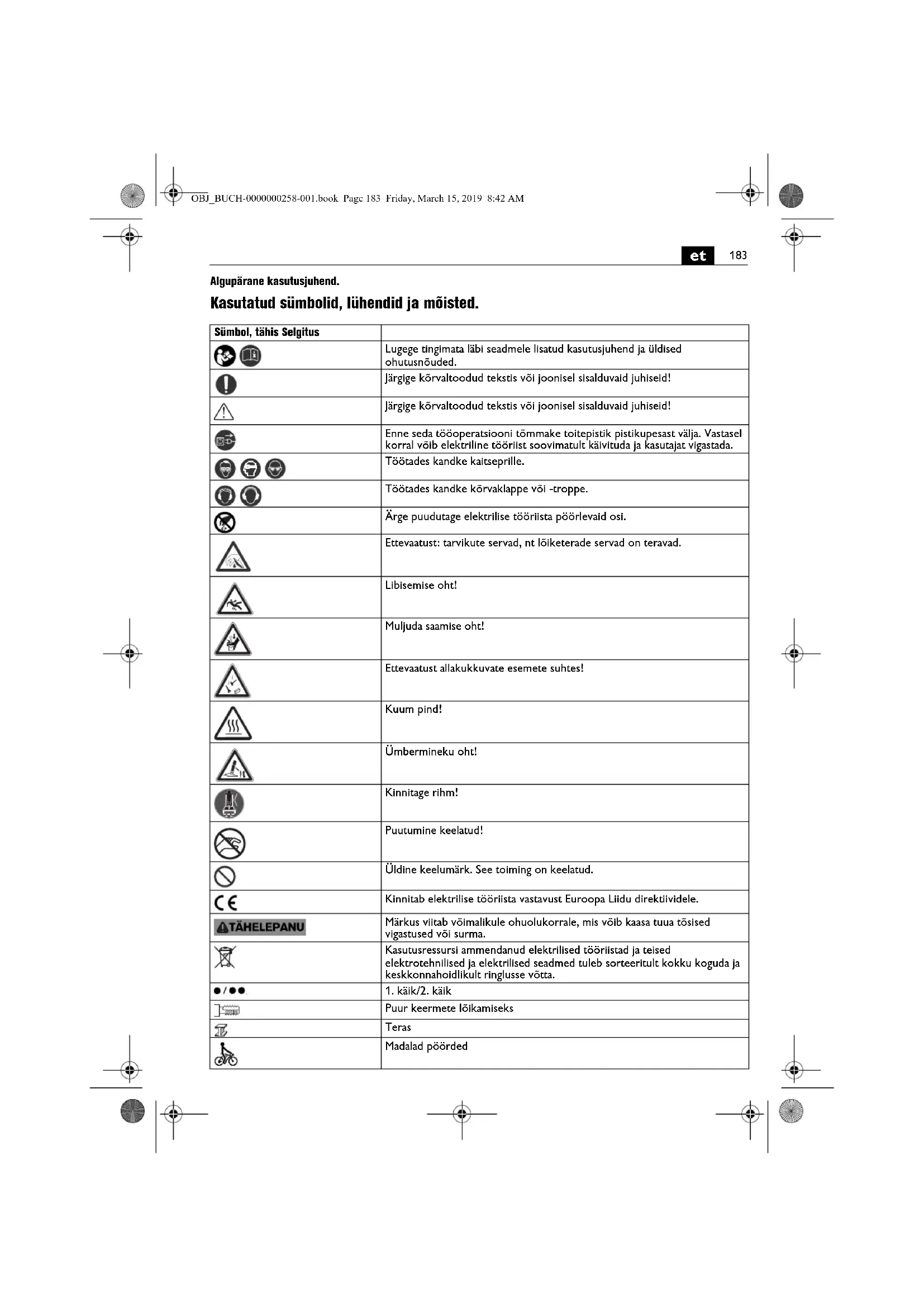 Enne elektrise tooriesta kasutuselevottu lugege pohjalikult labi kasutusjuhend ja jurdekuuluvad uldised ohutusnoured (dokumendi nr)