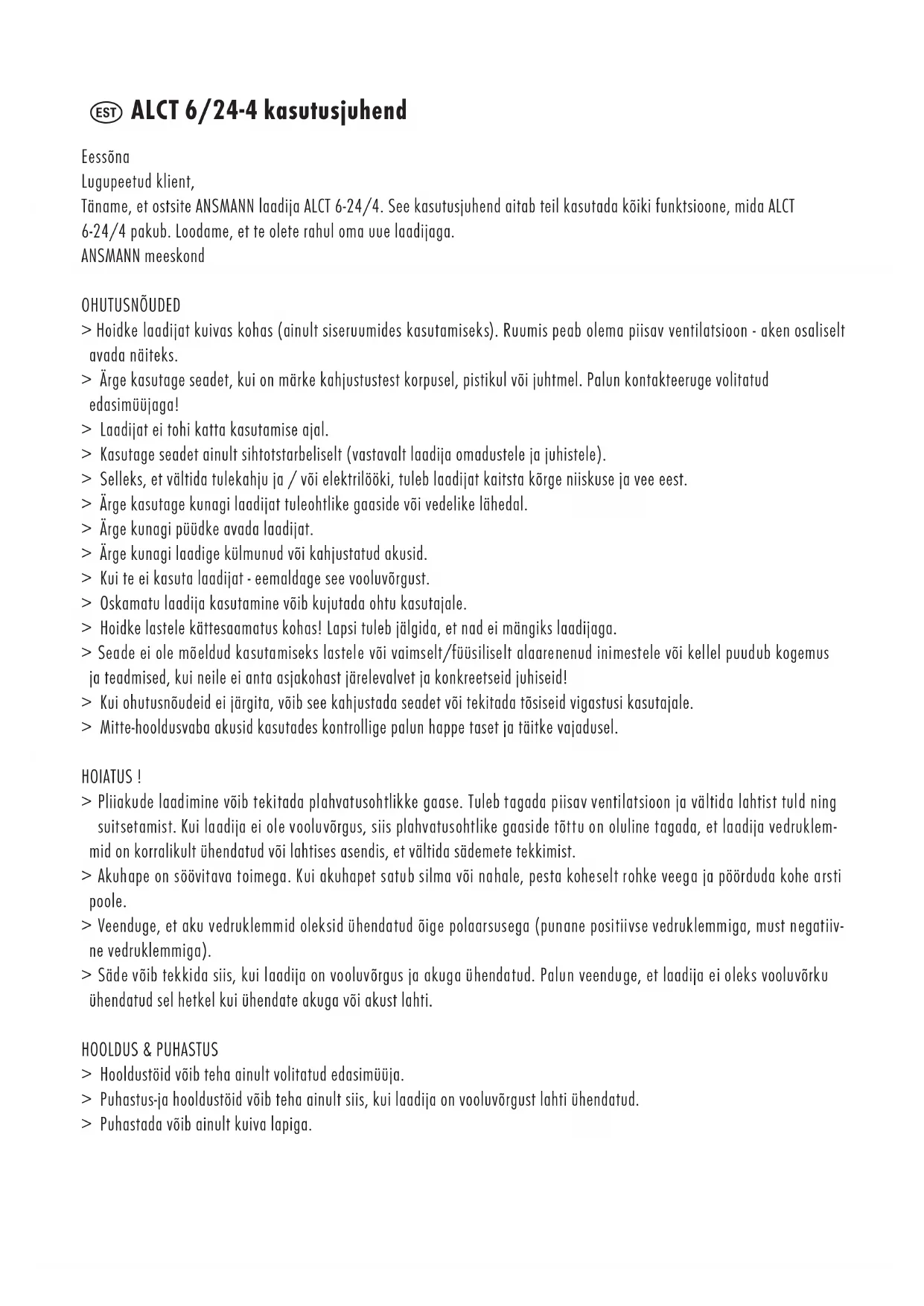 KASUTUSJUHEND ALCT 6244 ANSMANN