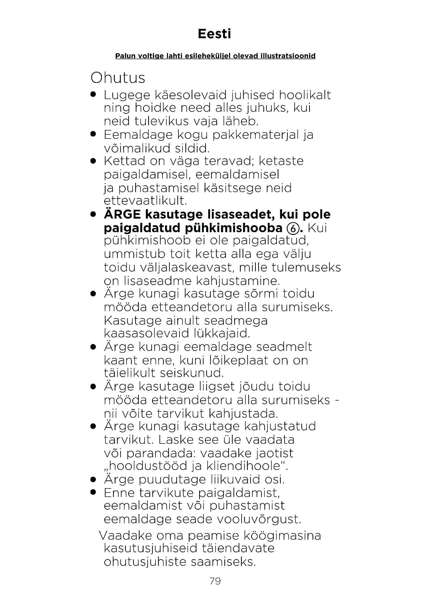Lugege käesolevaid juhised hoolikalt ning hoidke need alles juhuks, kui neid tulevikus vaja läheb.