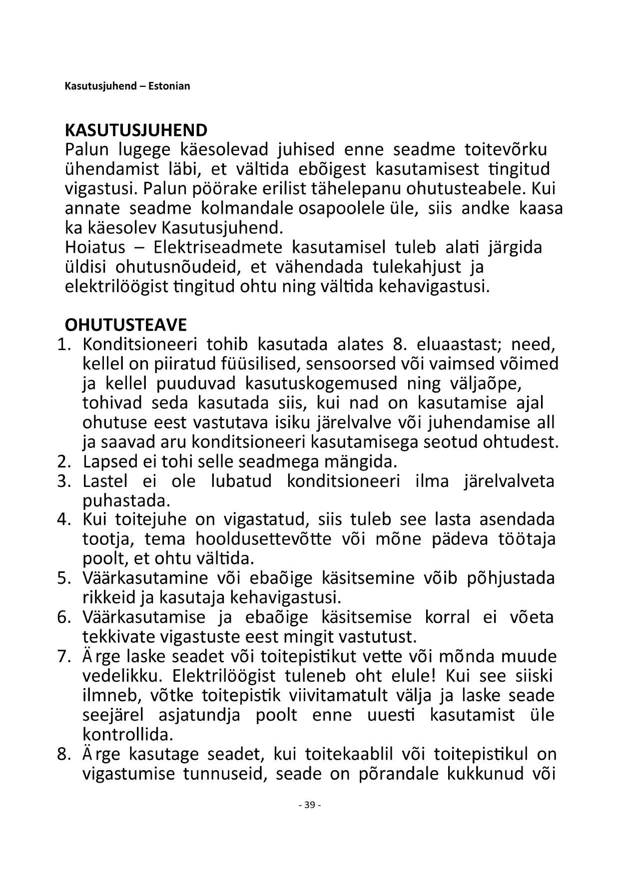 1. Konditsioneeri tohib kasutada alates 8. eluaastast; need,