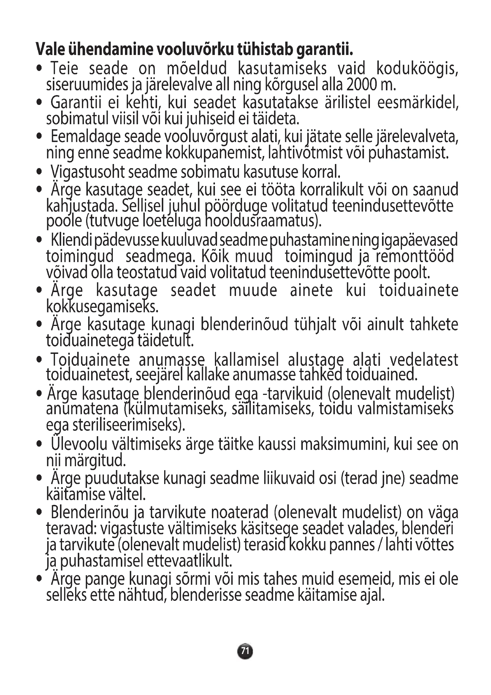 - Ärge kasutage seadet muude ainete kui toiduainete kokkusegamiseks.