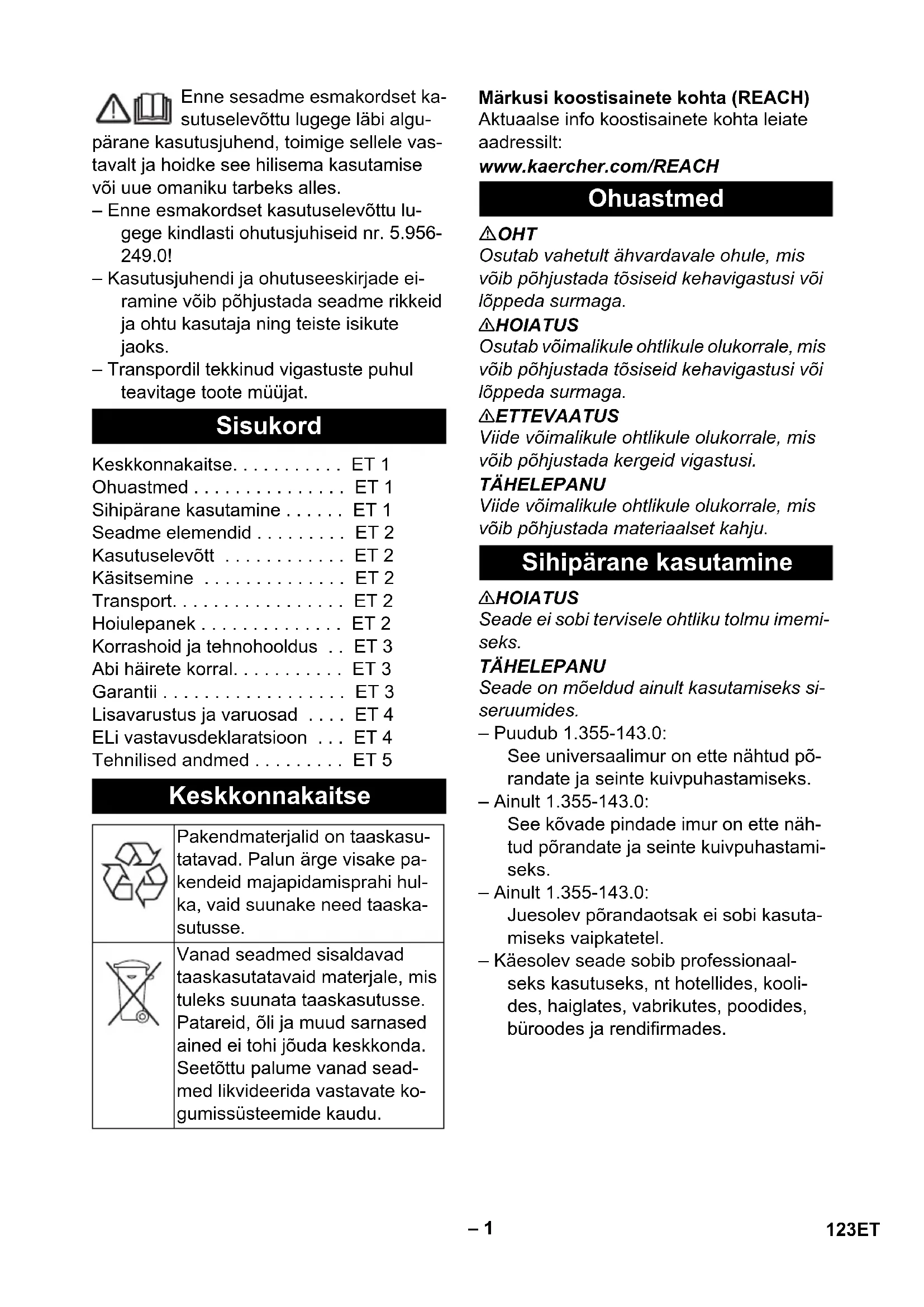 KASUTUSJUHEND T 121 Kärcher
