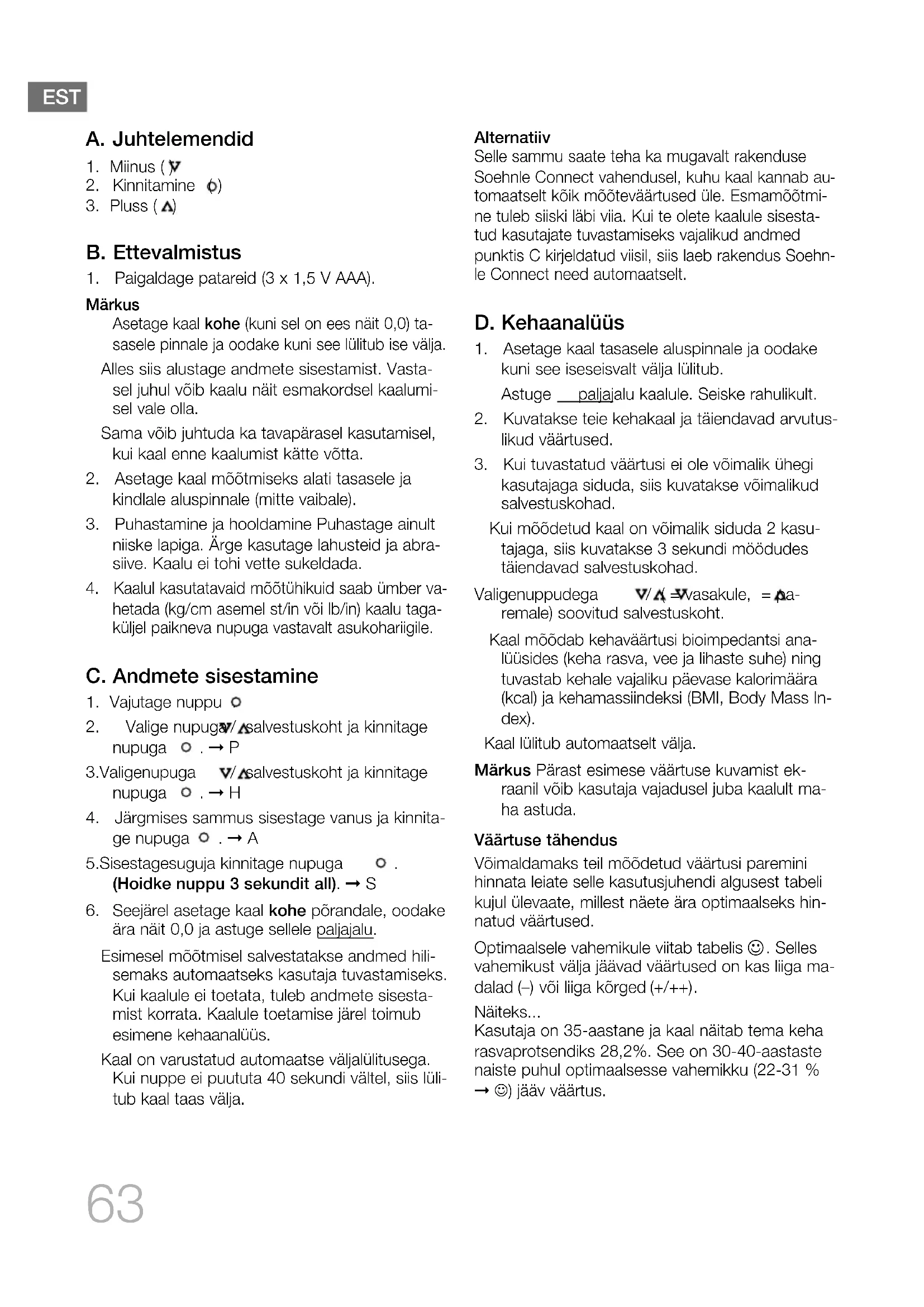tomaatselt kõik mõõteväärtused üle. Esmamõõtmi- ne tuleb siiski läbi viia. Kui te olete kaalule sisesta- tud kasutajate tuvastamiseks vajalikud andmed punktis C kirjeldatud viisil, siis laeb rakendus Soehn