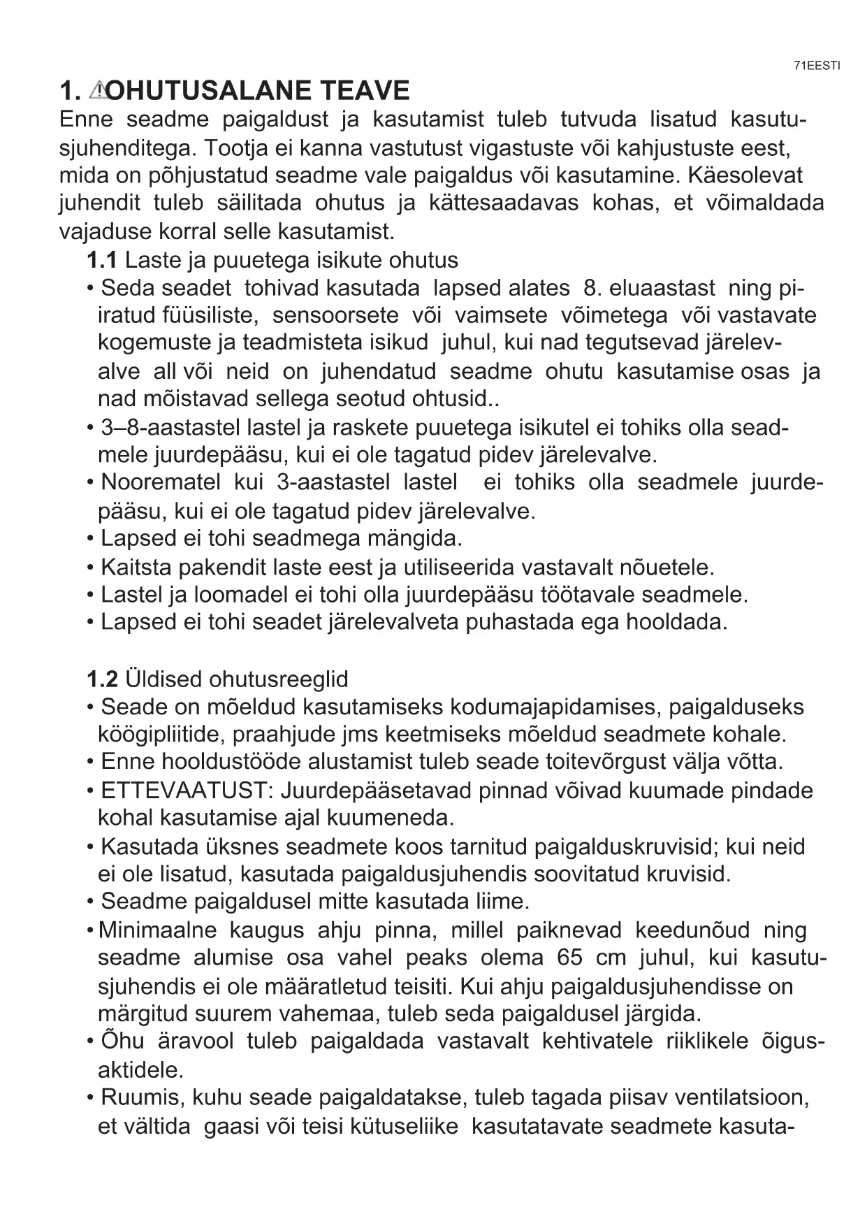 1.2 Üldised ohutusreeglid
