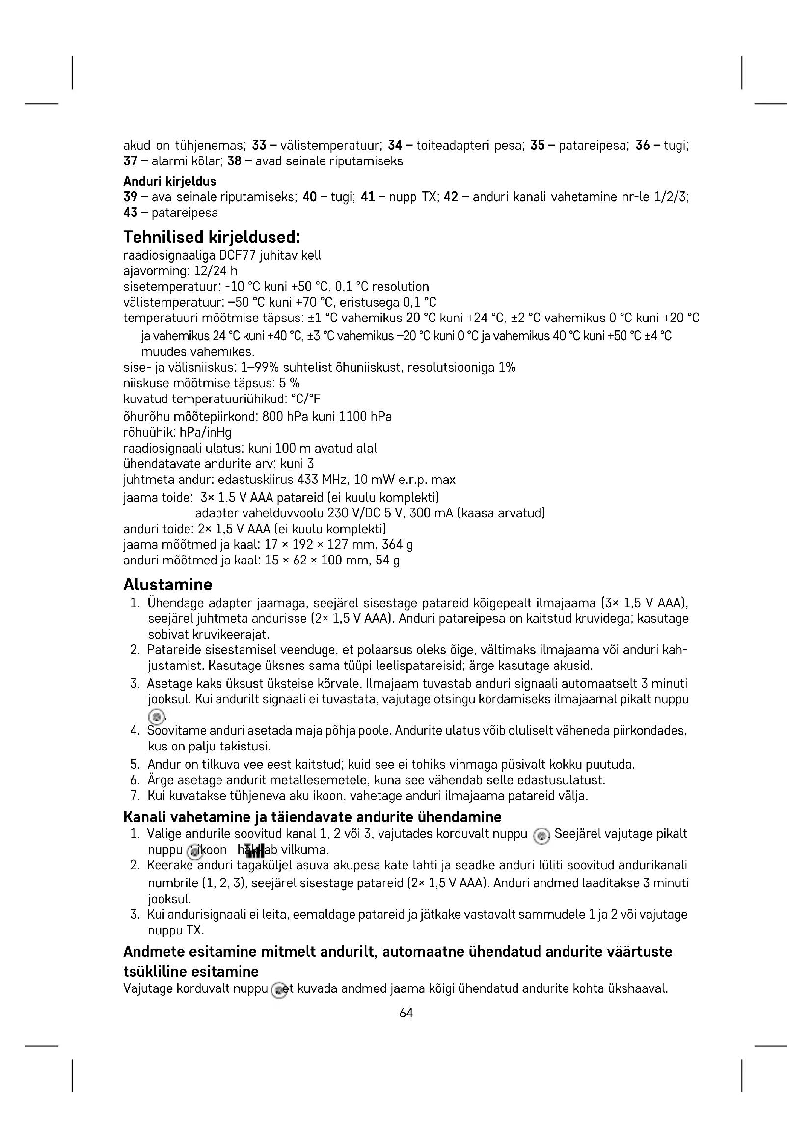 jooksul. Kui andurilt signaali ei tuvastata, vajutage otsingu kordamiseks ilmajaamal pikalt nuppu