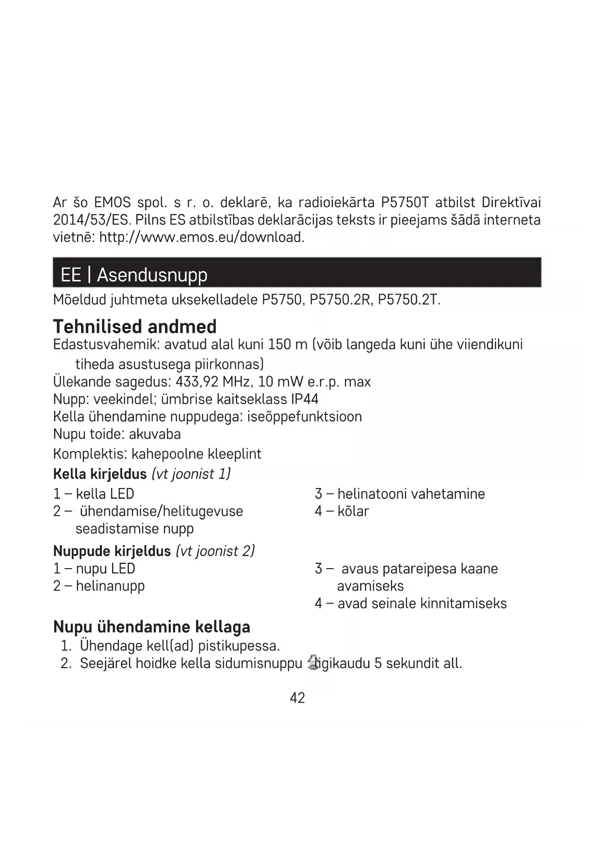 P5750T - Uksekellad Emos - Tasuta kasutusjuhend