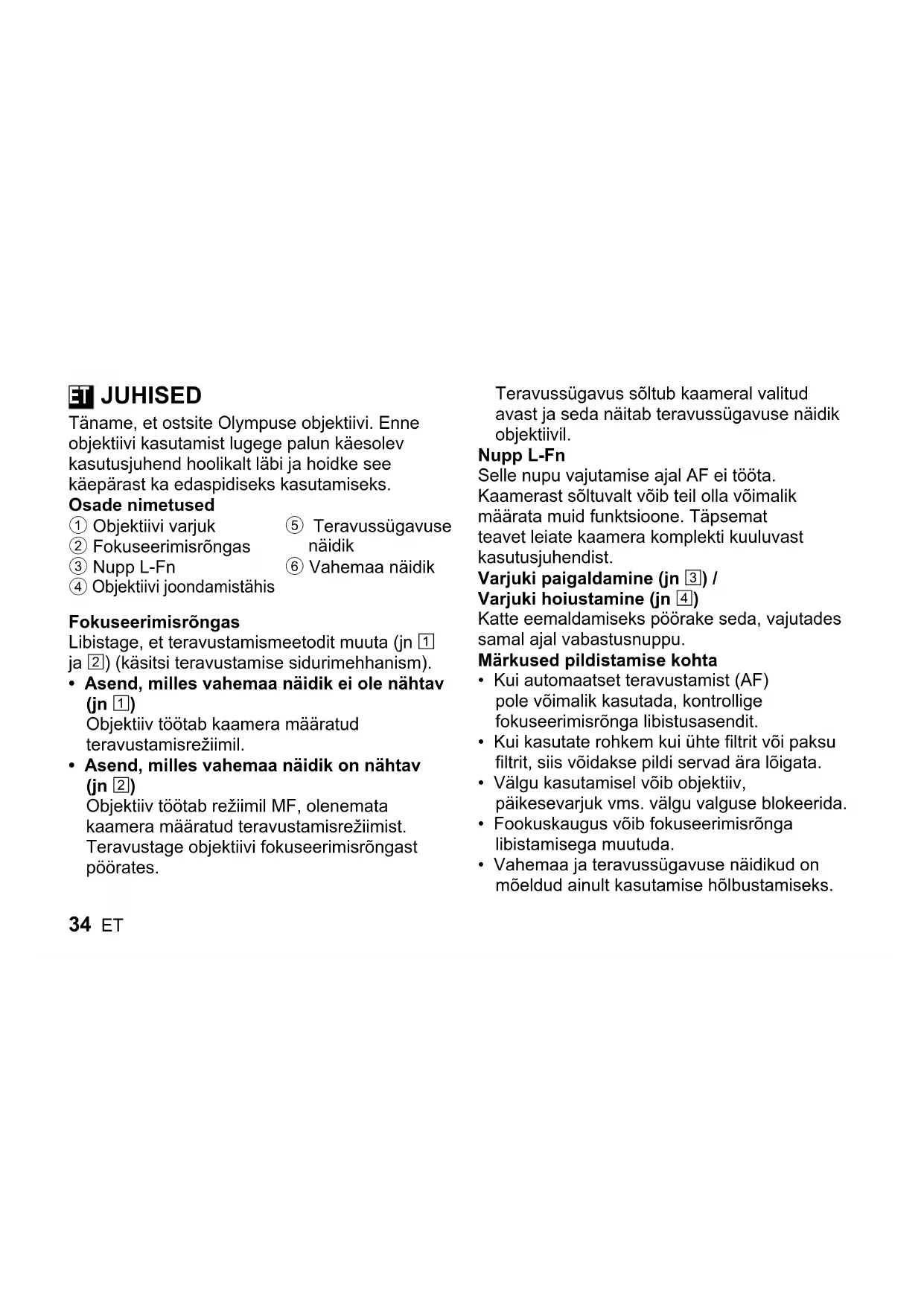 KASUTUSJUHEND ED 45mm F1.2 PRO OLYMPUS
