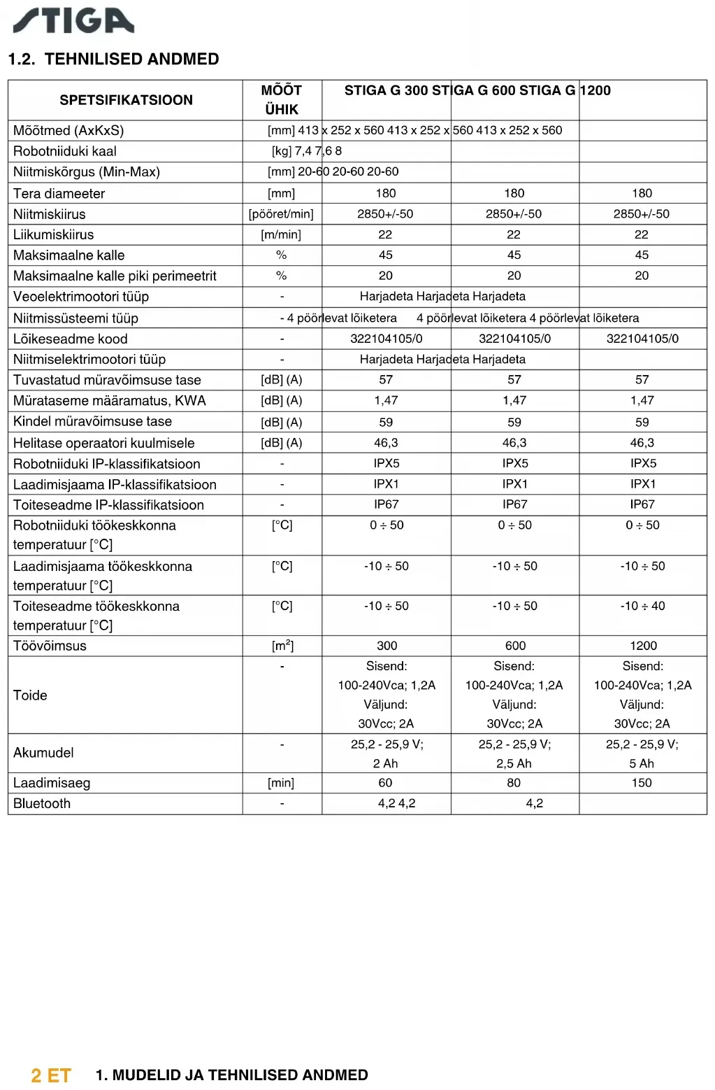 1.1. MUDELID Käesolev juhend on koostatud mudelite G 300, G 600, G 1200 kohta.2 ET