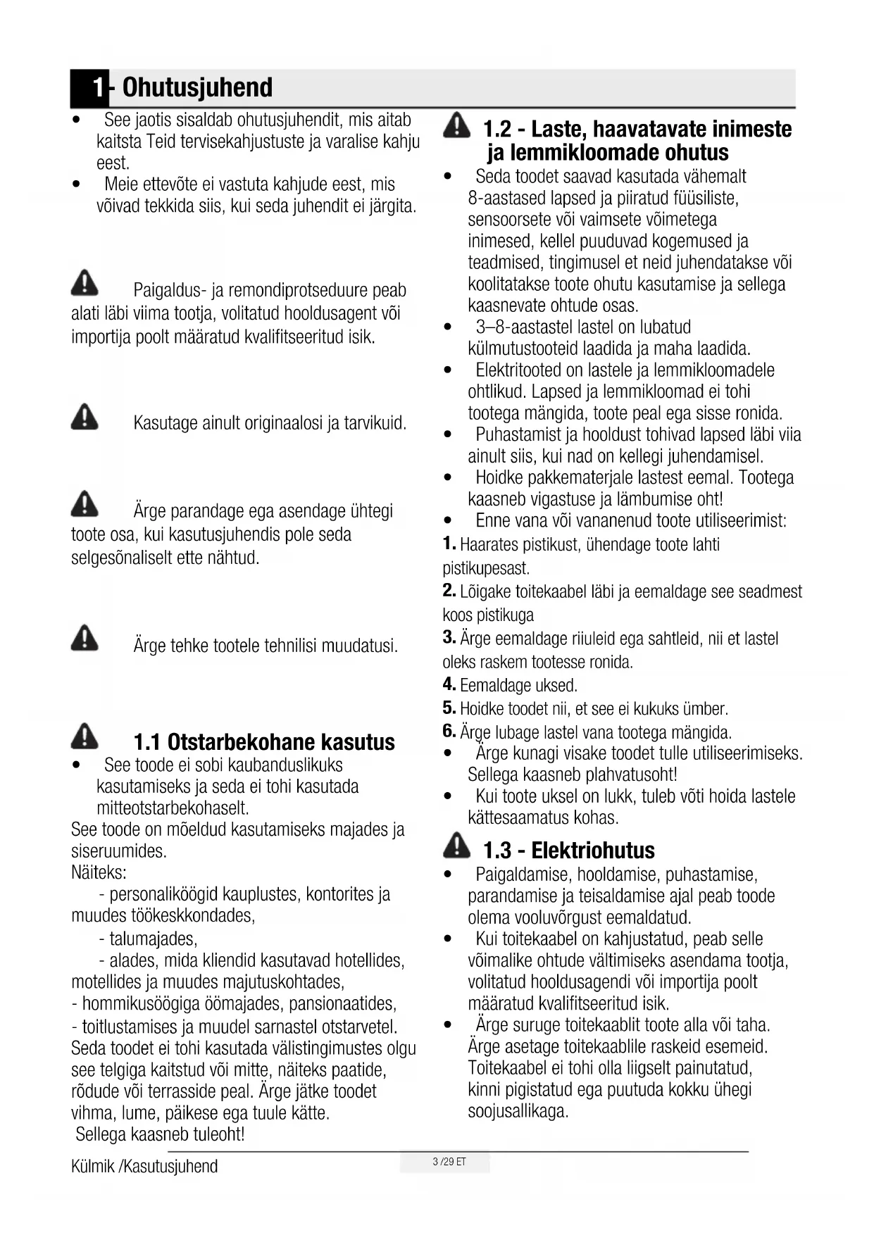 HOIATUS: Kahjustatud toitejuhtme peab välja vahetama volitatud teeninduses.