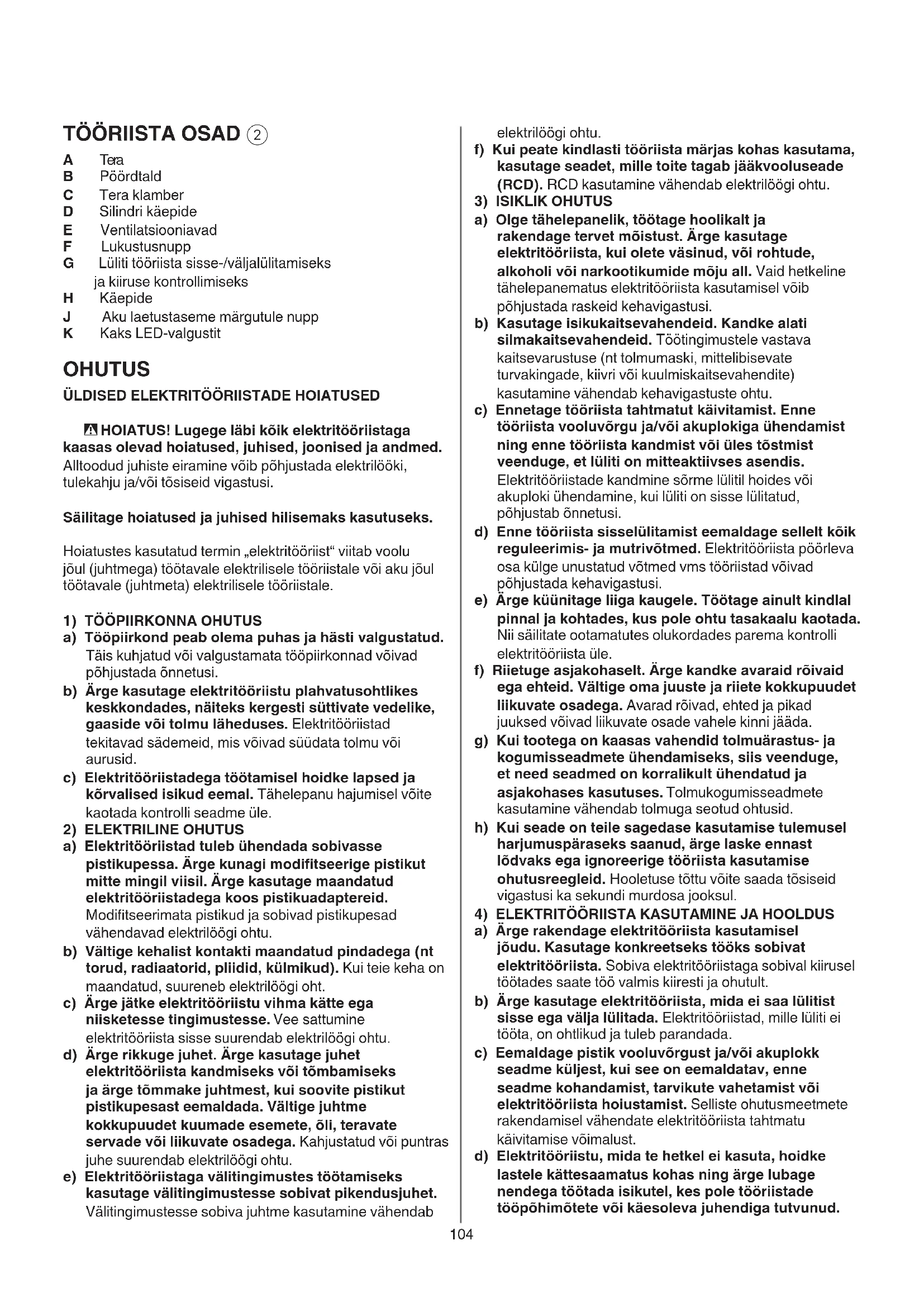 4) ELEKTRITÖÖRIISTA KASUTAMINE JA HOOLDUS
