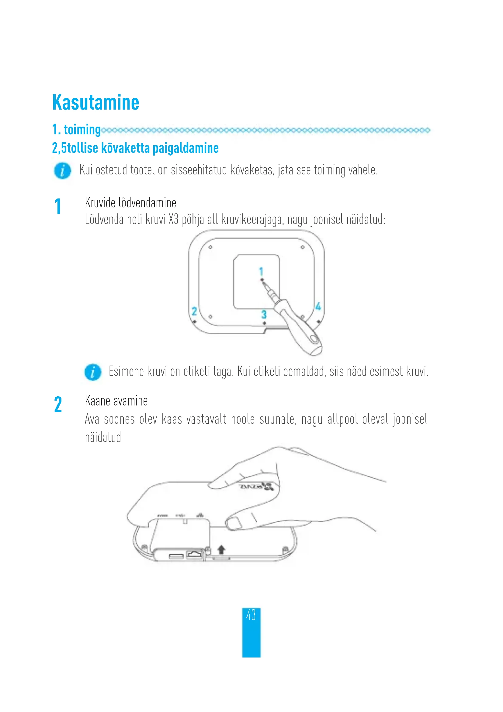 2,5tollise kõvaketta paigaldamine Kui ostetud tootel on sisseehitatud kõvaketas, jäta see toiming vahele.