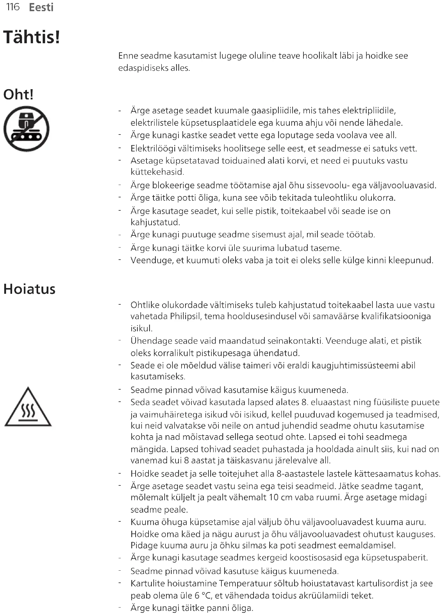 Eesti Tähtis! Enne seadme kasutamist lugege oluline teave hoolikalt läbi ja hoidke see edaspidiseks alles. Oht!