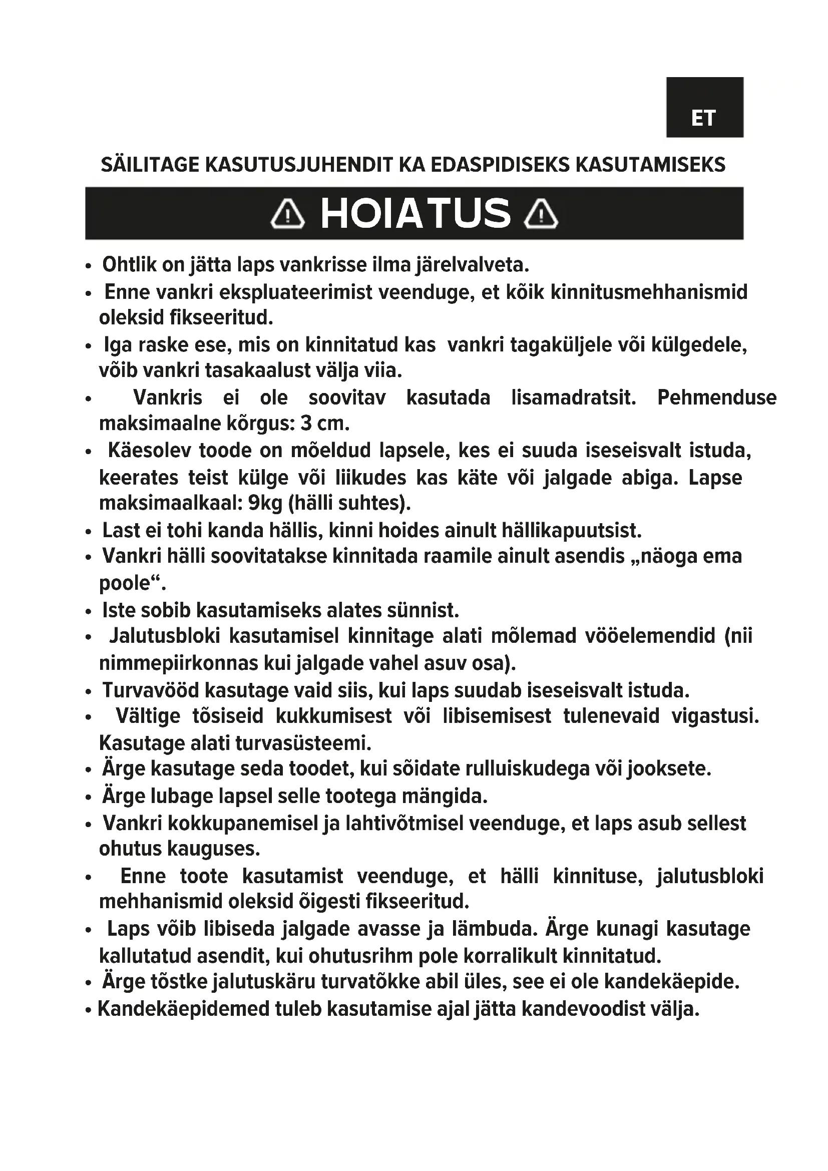 - Kui Te ei täida antud kasutusjuhendi nõudeid, võib Teie laps sattuda ohtu.