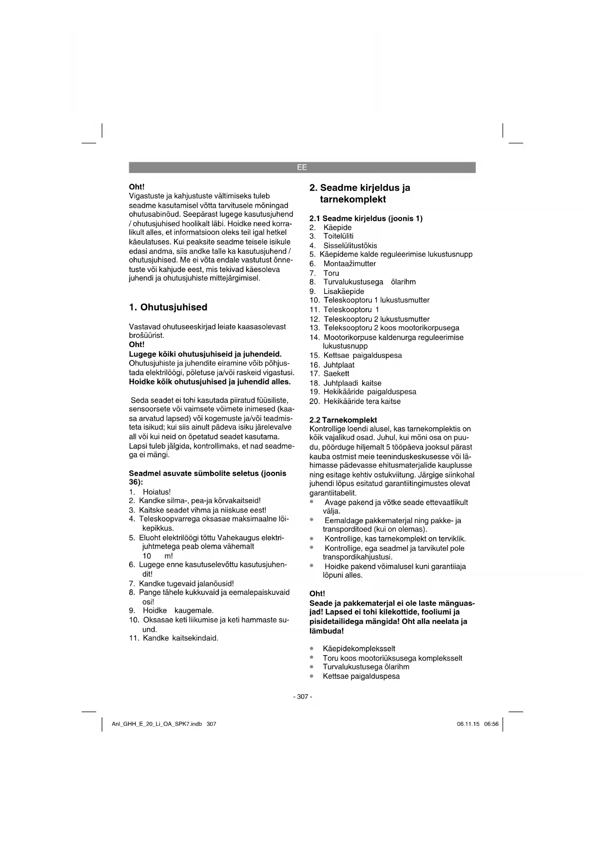 KASUTUSJUHEND GHH-E 20 Li OA Gardol