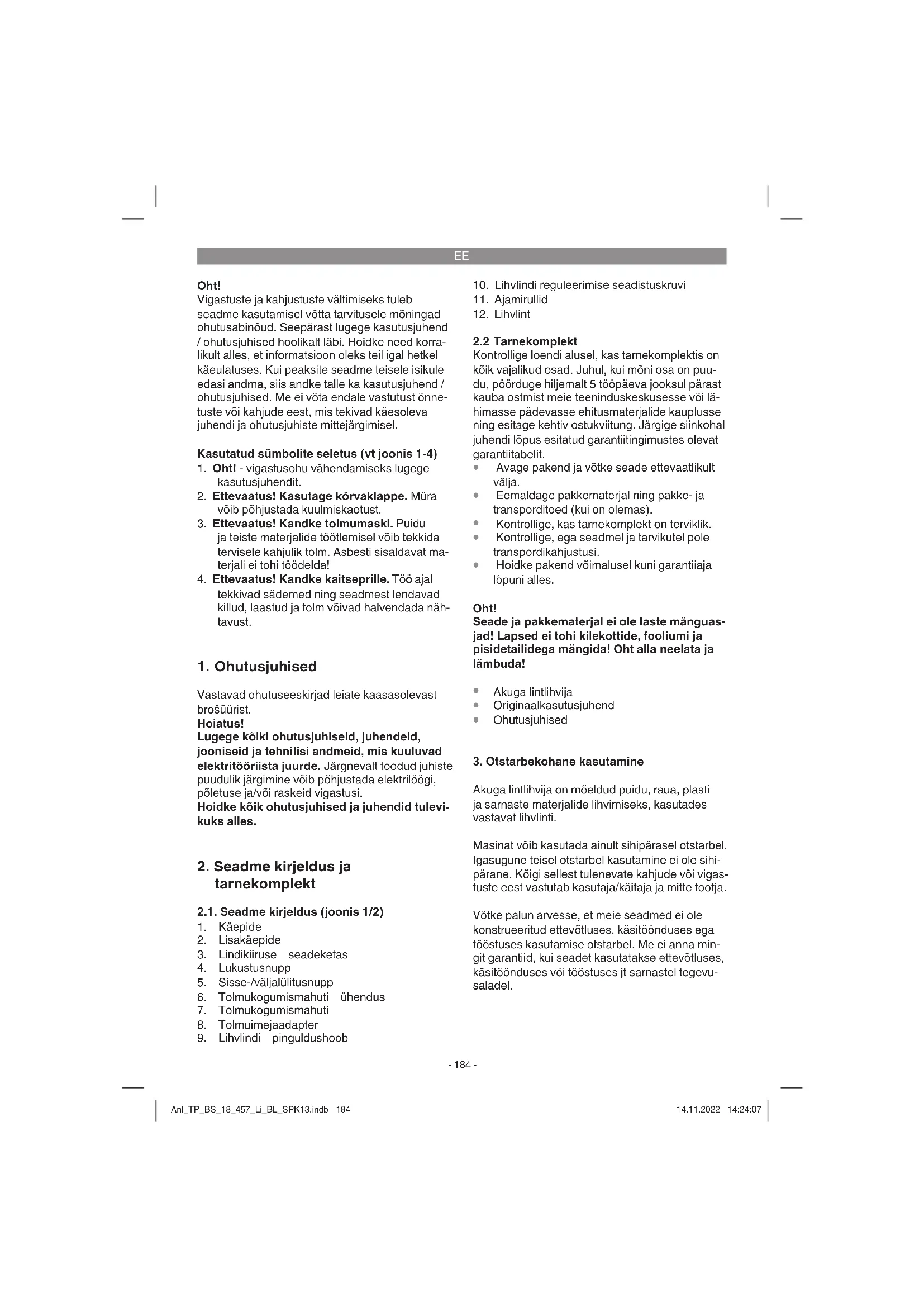 KASUTUSJUHEND TP-BS 18/457 Li BL EINHELL