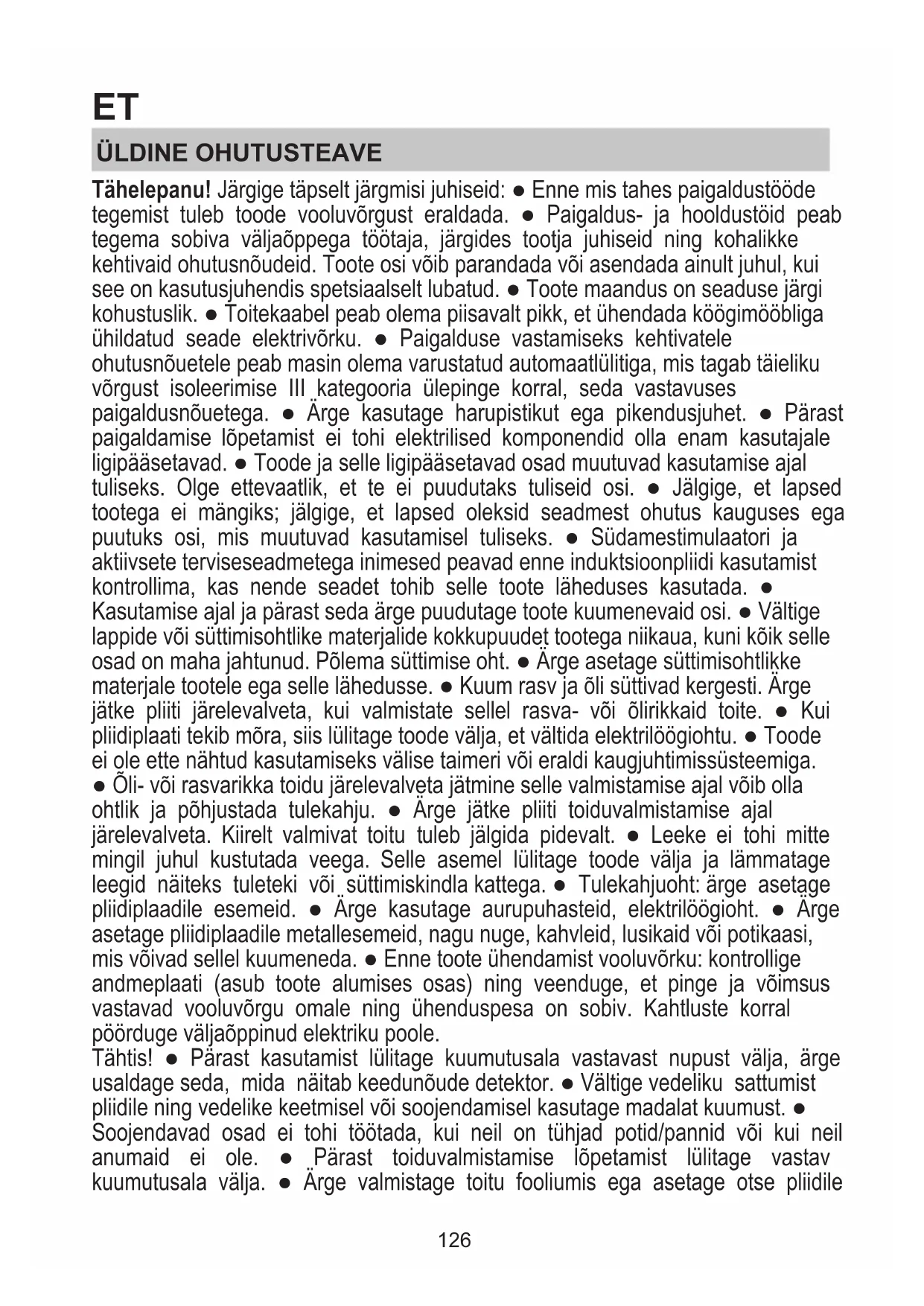 TEADMA JÄRGMIST. Kõik selle pliidiplaadi funktsioonid on välja töötatud nii, et need vastaksid kõige rangematele ohutusnõuetele. Seepärast võtke arvesse järgmist.