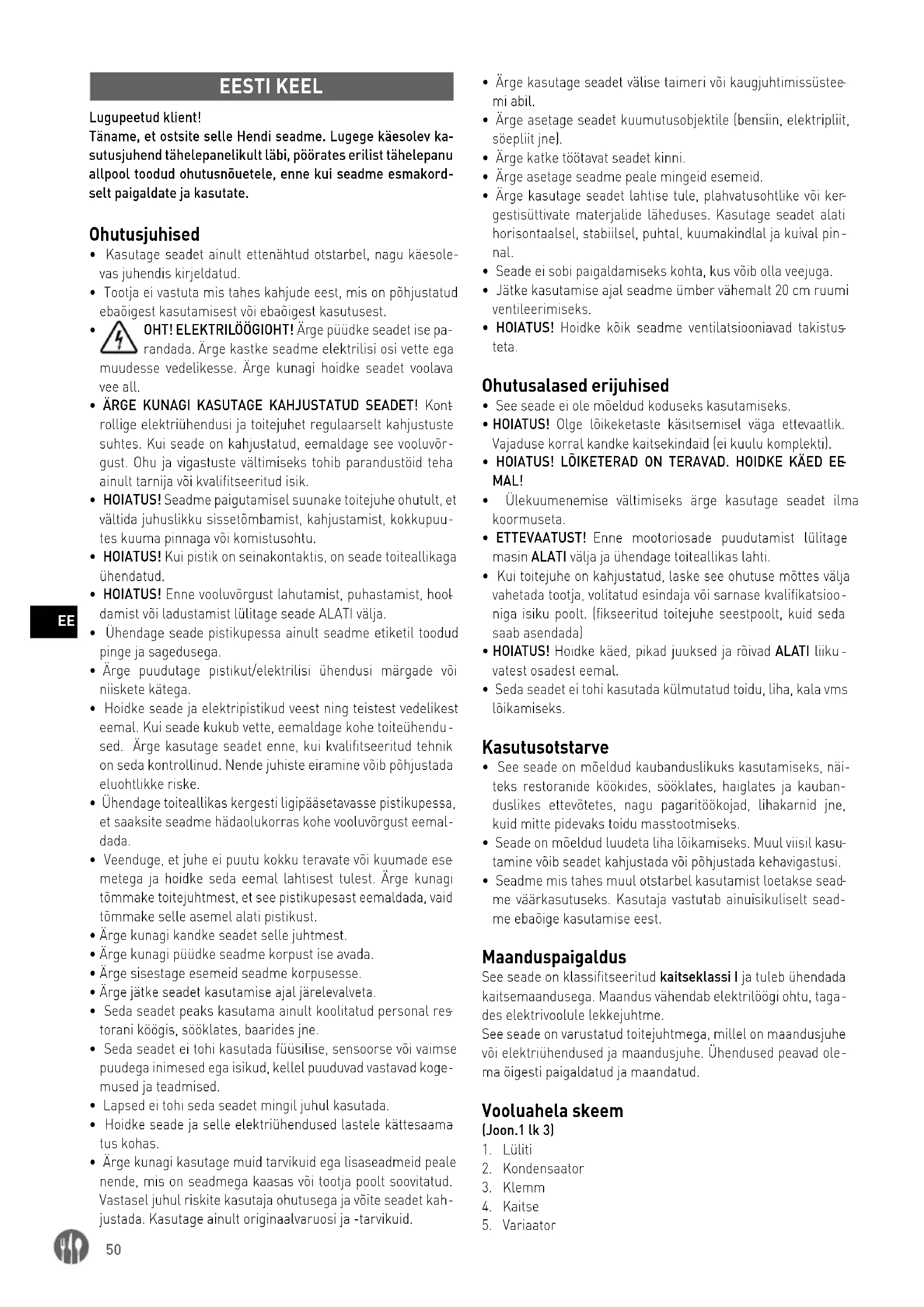 EESTI KEEL Lugupeetud klient! Täname, et ostsite selle Hendi seadme. Lugege käesolev ka