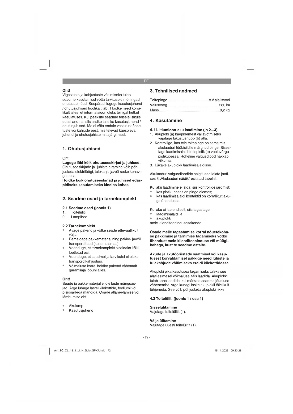 KASUTUSJUHEND TC-CL 18 Li H - Solo EINHELL