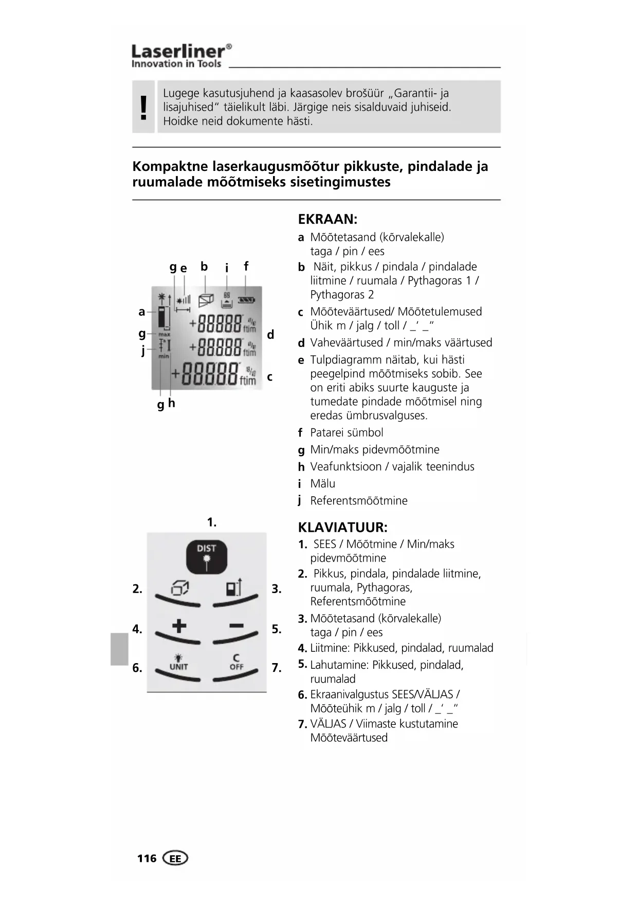 DistanceMaster Home - Mõõteseadmed Laserliner - Tasuta kasutusjuhend