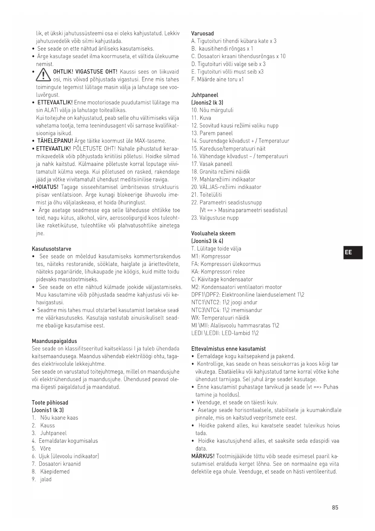 ETTEVAATUST! TULEOHT! Kasutatav kül- mutusagens on R290 See on tuleohtlik külmutusagens, mis on keskkonnasõbra