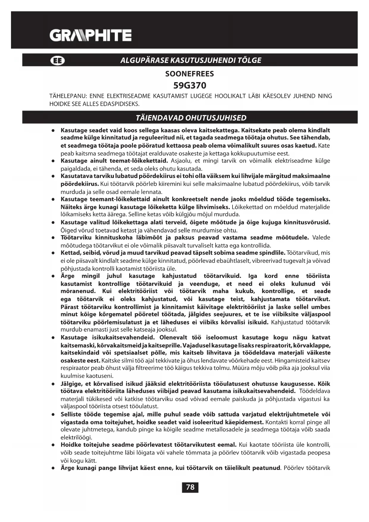 59G370 - Saag Graphite - Tasuta kasutusjuhend
