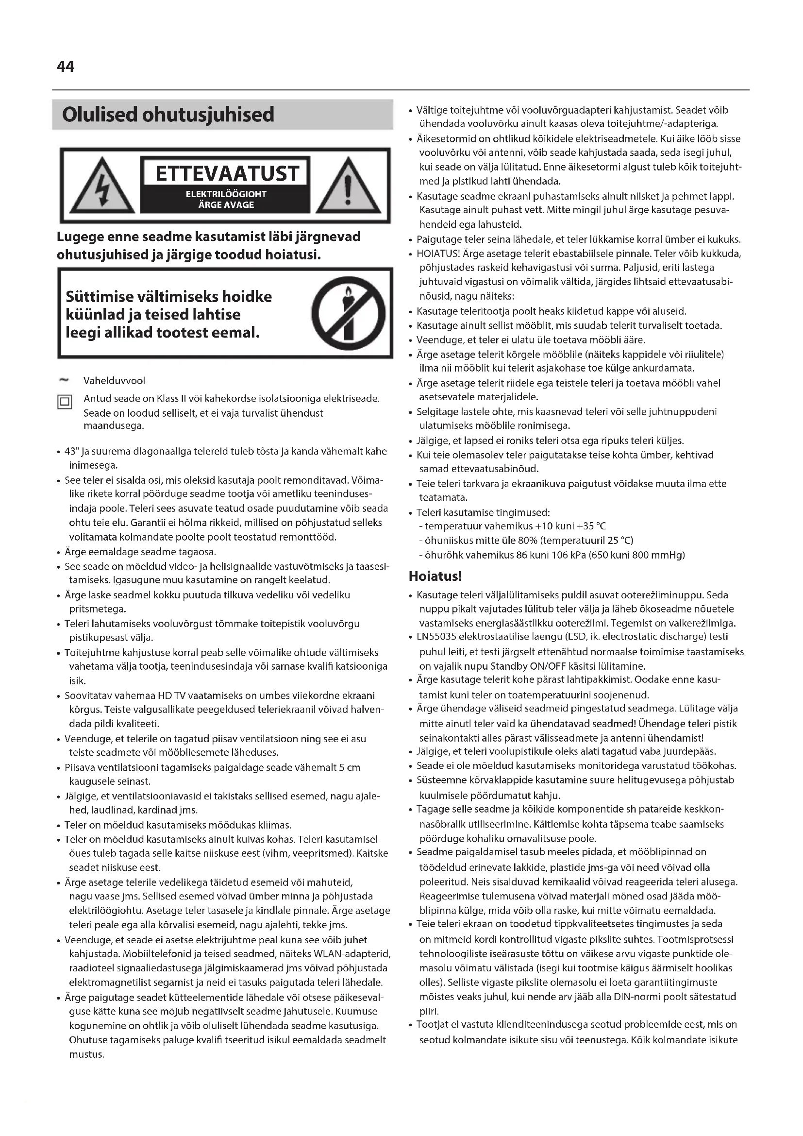 - 43" ja suurema diagonaaliga telereid tuleb tõsta ja kanda vähemalt kahe inimesega.