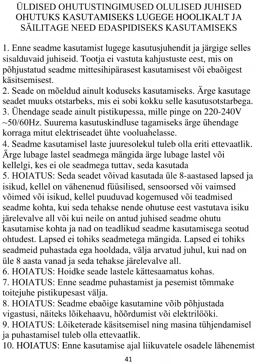 10. HOIATUS: Enne kasutamise ajal liikuvatele osadele lähenemist42