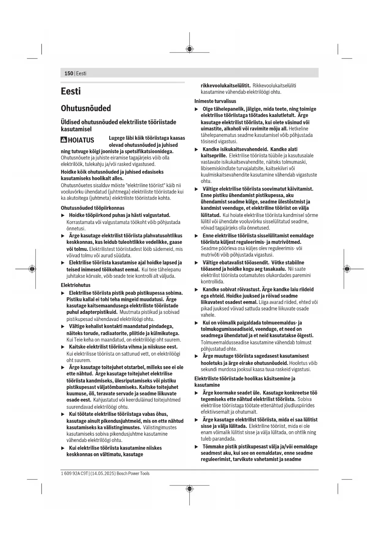 Kaal EPTA-Procedure01:2014 järgi kg 1,4 Kaitseklass / II Andmed kehtivad nimipingel [U] 230V. Teistsuguste pingete ja kasutusriigis spetsiifiliste mudelite puhul võivad toodud andmed varieeruda. Väärtused võivad olenevalt tootest varieeruda ja oleneda kasutus- ning keskkonnatingimustest.Täiendav teave veebisaidil www.bosch-professional.com/wac. Andmed müra/vibratsiooni kohta Mürapäästuväärtused, määratud vastavalt normileEN62841-2-17. Elektrilise tööriista A-korrigeeritud müratase on tavaliselt: helirõhutase 86dB(A); helivõimsustase 94dB(A). Mõõtemääramatus K=3dB. Kandke kuulmiskaitset! Vibratsioonitase a