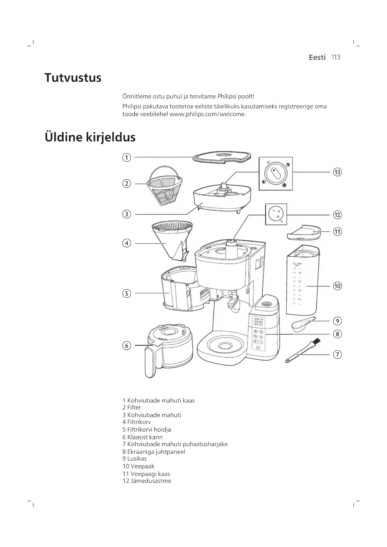 Eesti Tutvustus Õnnitleme ostu puhul ja tervitame Philipsi poolt! Philipsi pakutava tootetoe eeliste täielikuks kasutamiseks registreerige oma toode veebilehel www.philips.com/welcome. Üldine kirjeldus