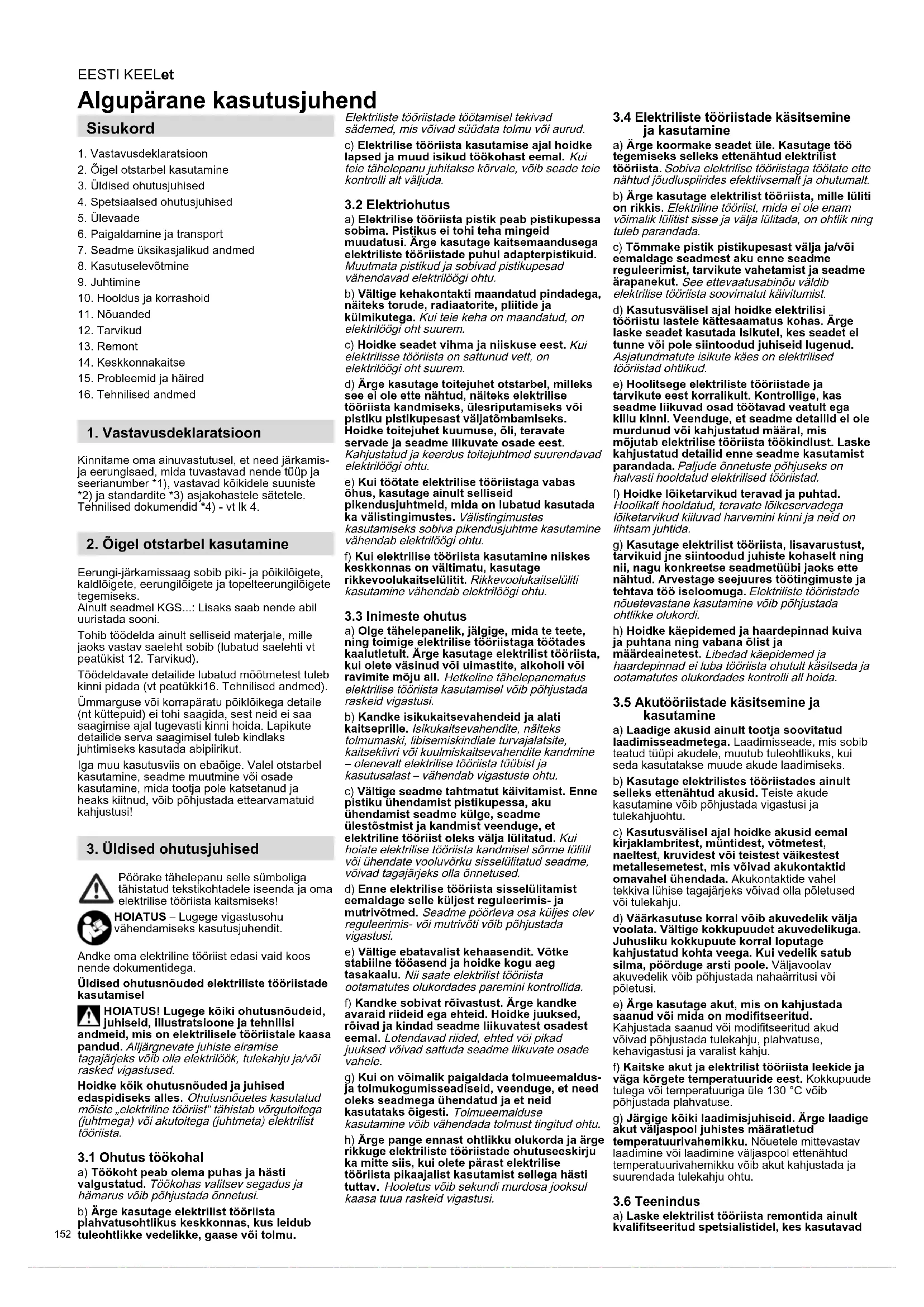 a) Laske elektrilist tööriista remontida ainult kvalifitseeritud spetsialistidel, kes kasutavad Sisukord