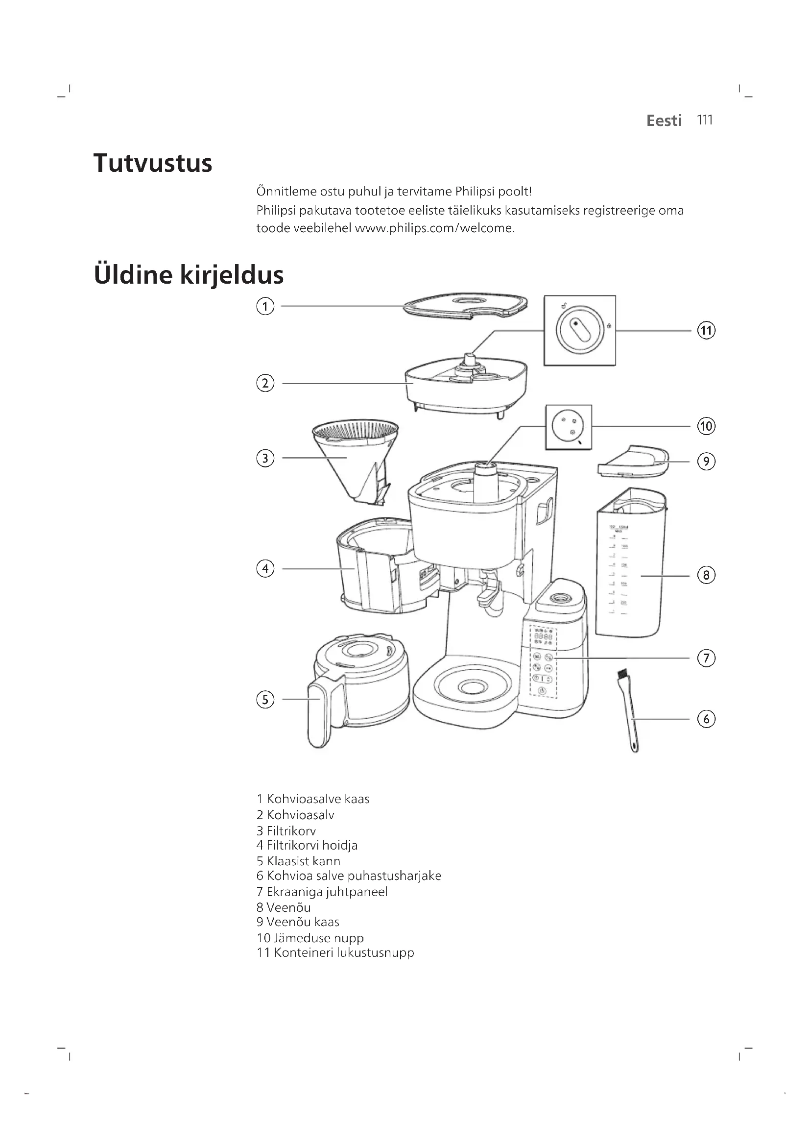 Eesti Tutvustus Õnnitleme ostu puhul ja tervitame Philipsi poolt! Philipsi pakutava tootetoe eeliste täielikuks kasutamiseks registreerige oma toode veebilehel www.philips.com/welcome. Üldine kirjeldus