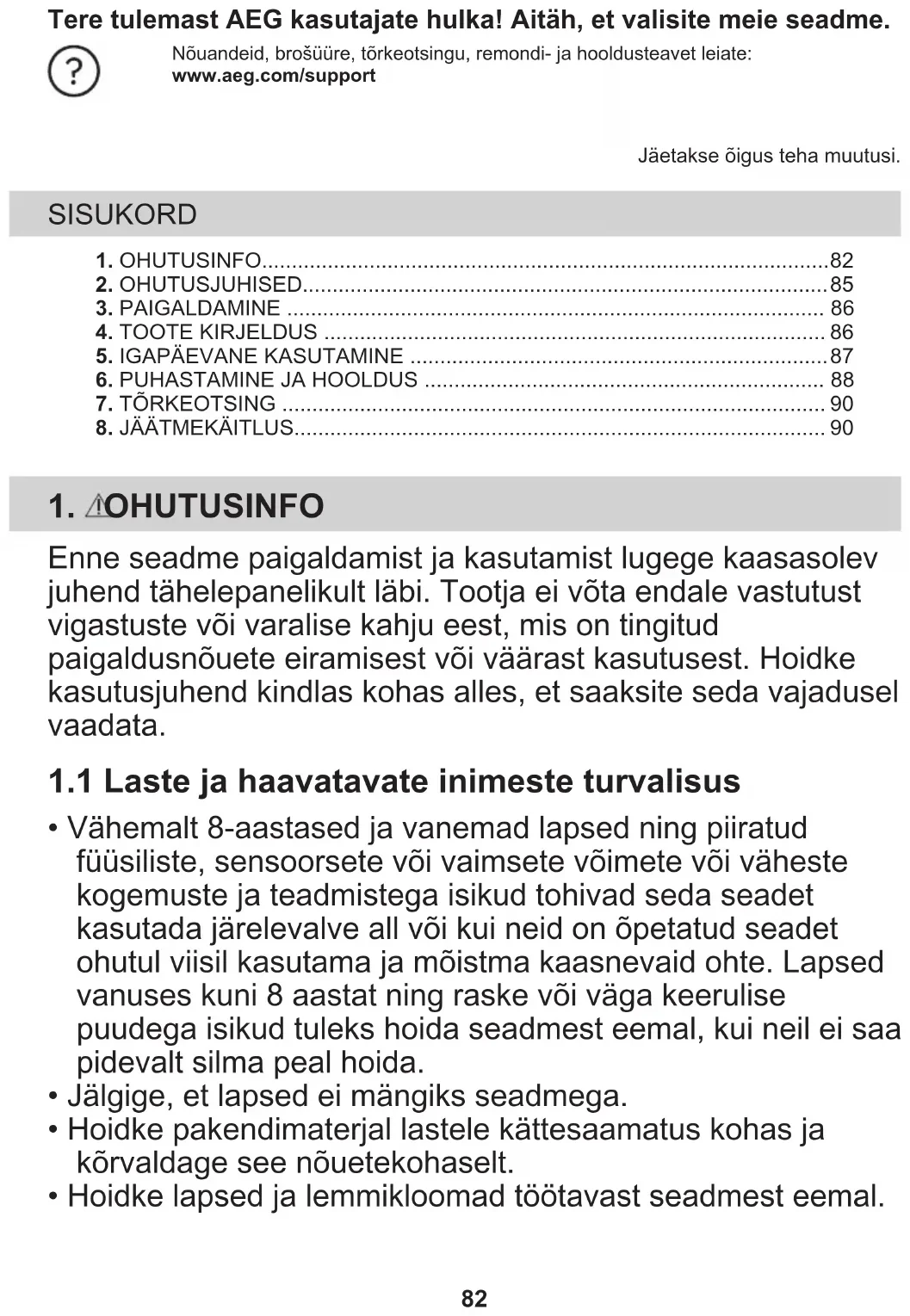 - Vähemalt 8-aastased ja vanemad lapsed ning piiratud füüsiliste, sensoorsete või vaimsete võimete või väheste kogemuste ja teadmistega isikud tohivad seda seadet kasutada järelevalve all või kui neid on õpetatud seadet ohutul viisil kasutama ja mõistma kaasnevaid ohte. Lapsed vanuses kuni 8 aastat ning raske või väga keerulise puudega isikud tuleks hoida seadmest eemal, kui neil ei saa pidevalt silma peal hoida.