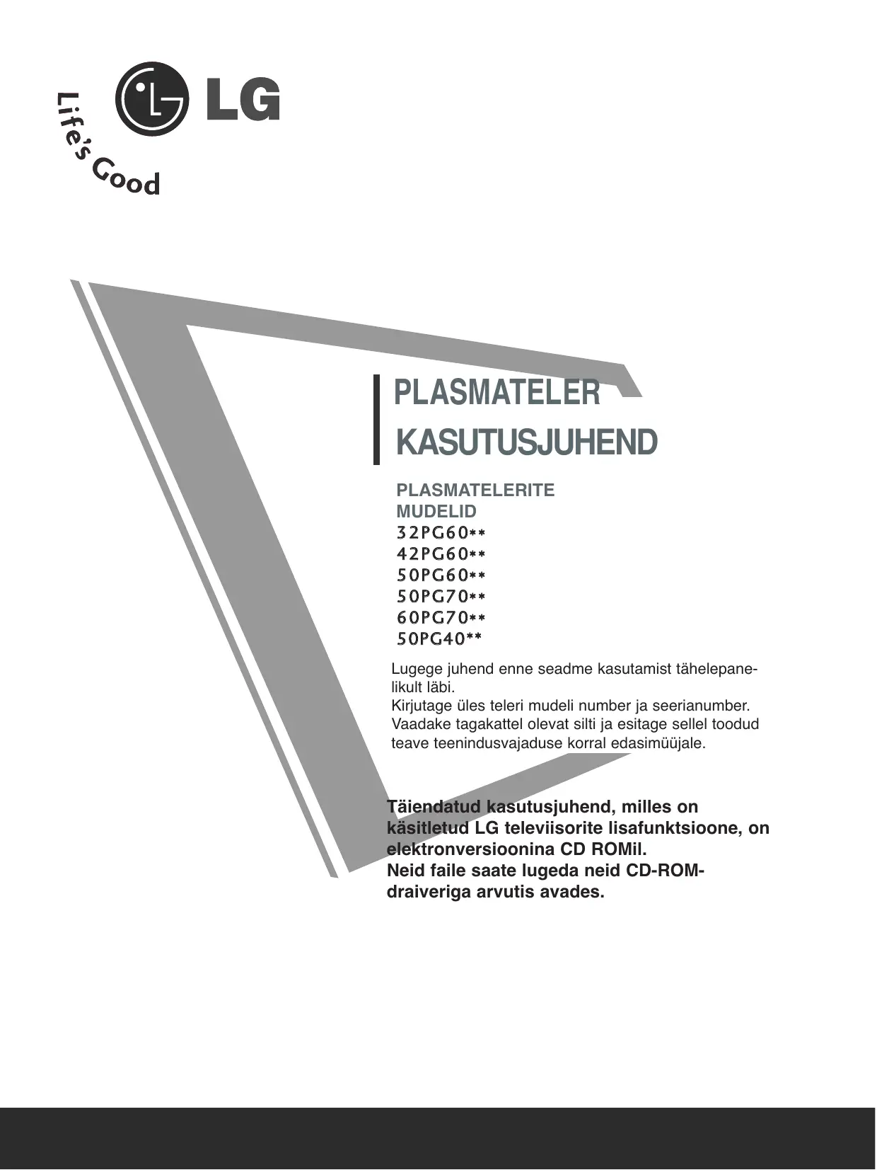 32PG6000 - Telekas LG - Notice d'utilisation et mode d'emploi gratuit