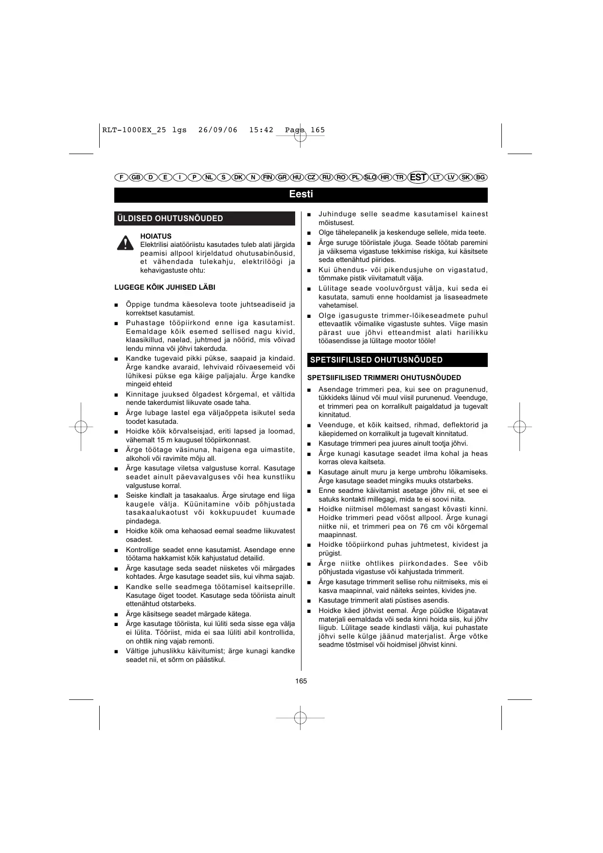 CONSIGNES DE SÉCURITÉ SPÉCIFIQUES CONSIGNES DE SÉCURITÉ SPÉCIFIQUES AUX COUPE-BORDURES