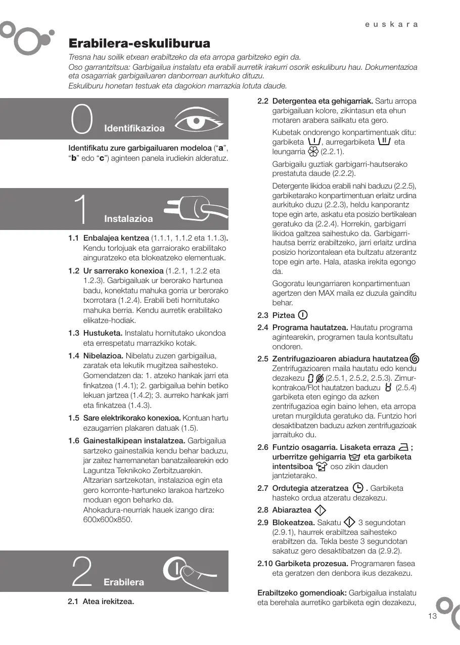 Oso garrantzitsua: Garbigailua instalatu eta erabili aurretik irakurri osorik eskuliburu hau. Dokumentazioa eta osagarriak garbigailuaren danborrean aurkituko dituzu.