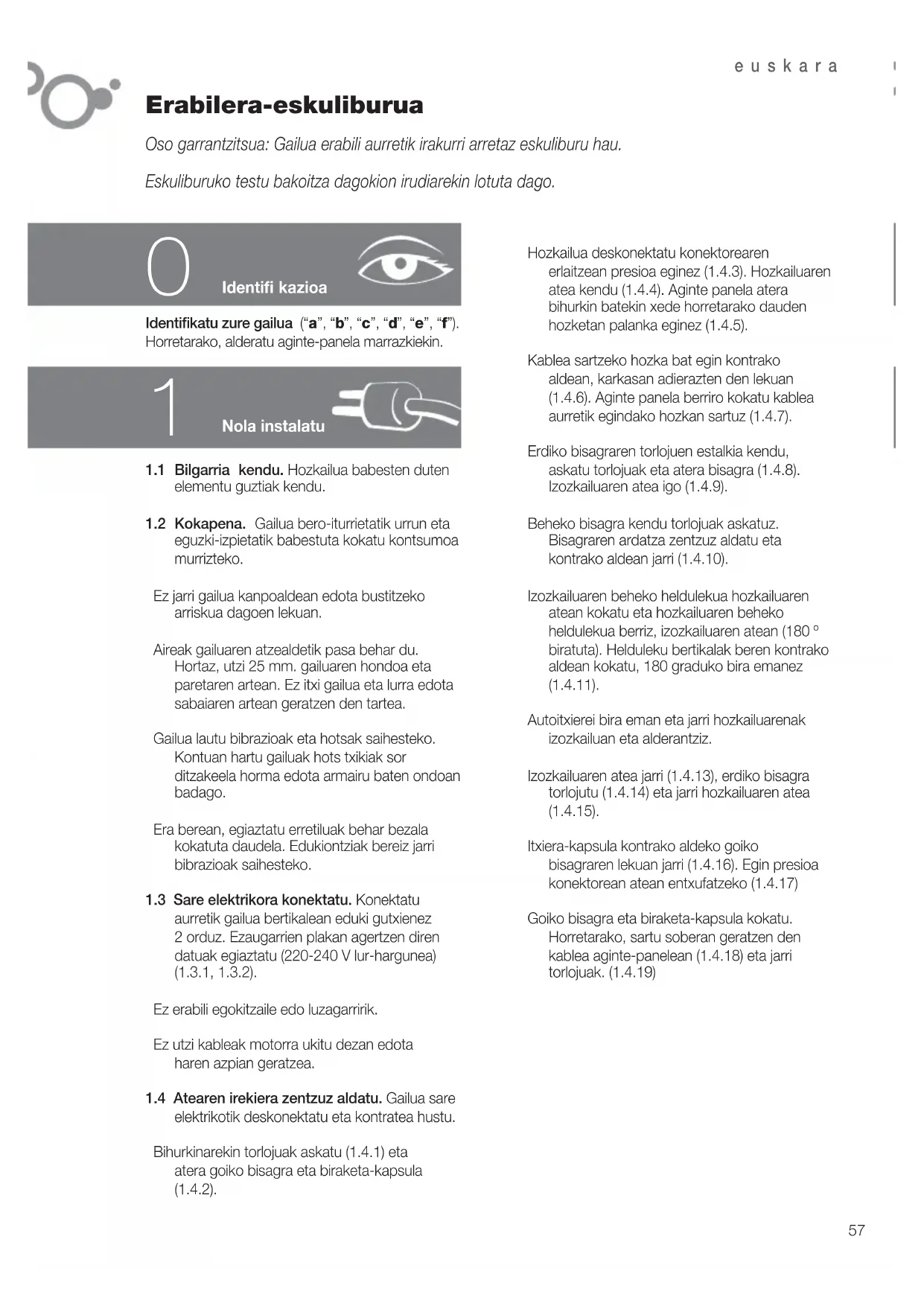 1.2 Kokapena. Gailua bero-iturrietatik urrun eta eguzki-izpietakibabestuta kokatu kontsumoa murrizteko.