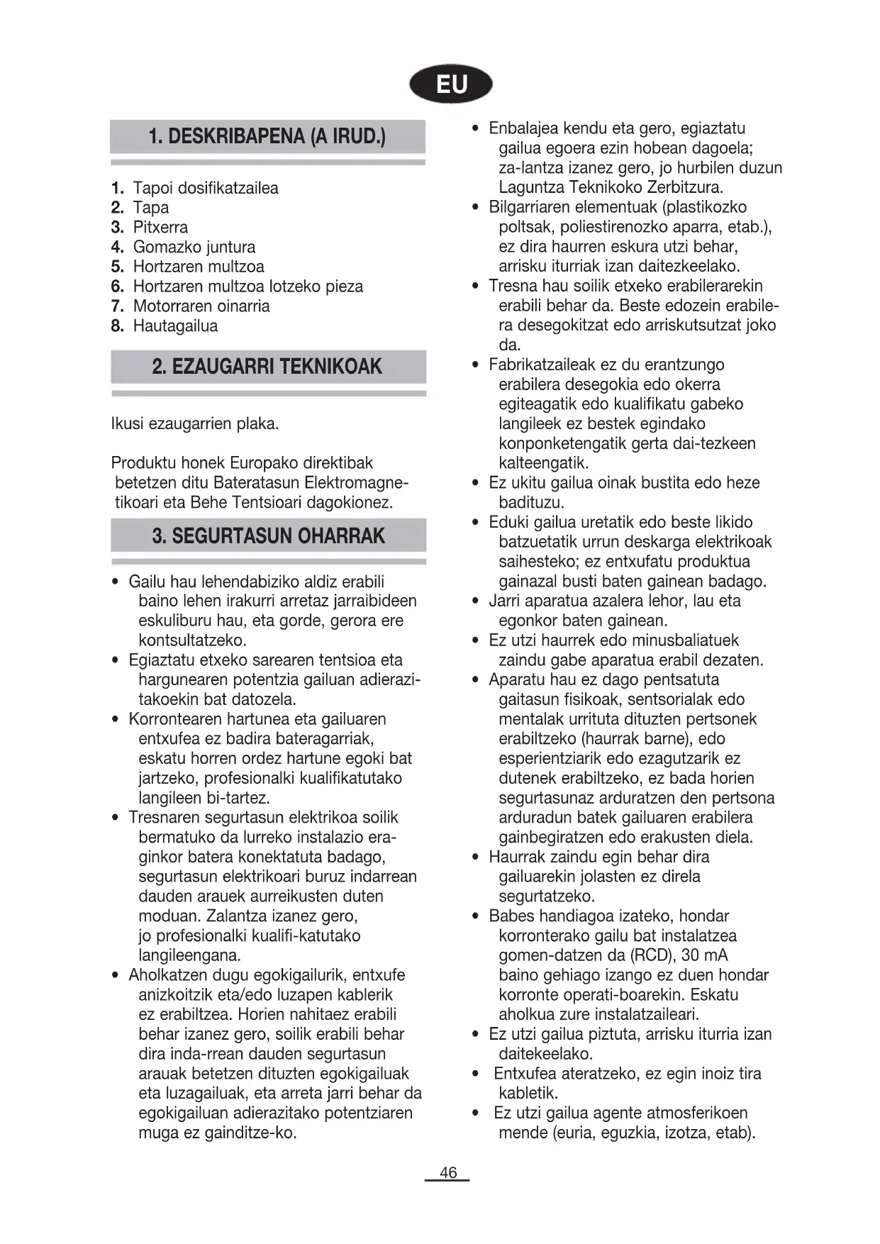• Ez erabili edo jarri gailuaren zatirik