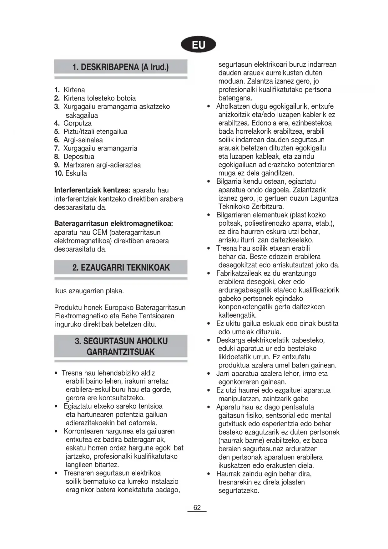 • Tresnaren segurtasun elektrikoa