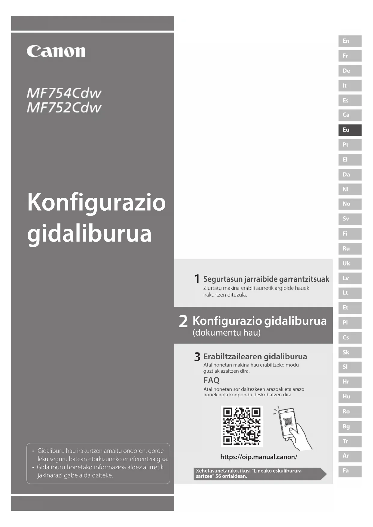 Konfigurazio gidaliburua (dokumentu hau) Konfigurazio gidaliburua https://oip.manual.canon/