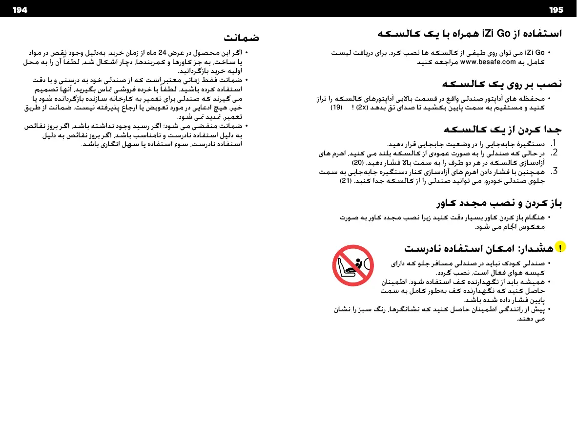 به خاطر انتخاب BeSafe iZi Goاز شما متشکریم ! !مهم است که این دفترچه راهنمای کاربر را پیش از نصب صندلی خود ،مطالعه منایید .نصب نادرست ممکن است کودک شما را در معرض خطر قرار دهد.