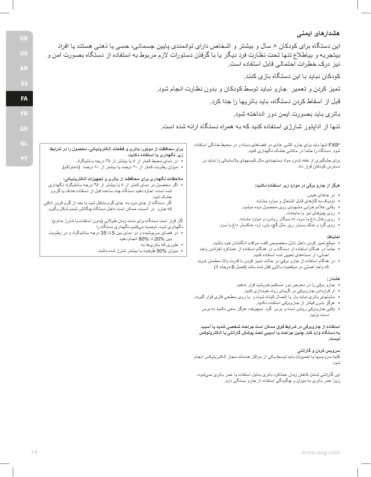 FX9-1-ALRG - جاروبرقی بی‌سیم AEG - Notice d'utilisation et mode d'emploi gratuit