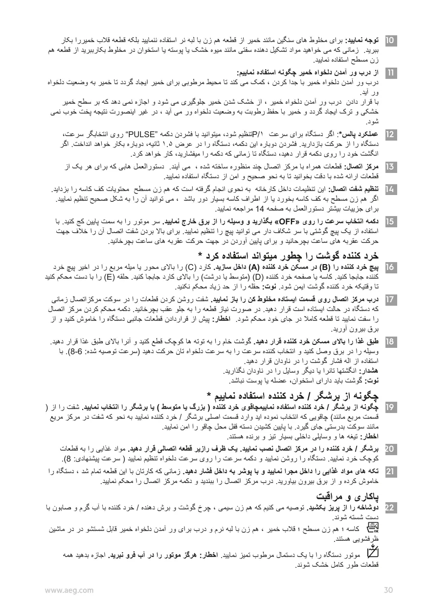 Attachment hub: The appliance comes with a built in multipurpose Attachment hub. Read and carefully follow the instructions that comes with each attachment for correct and safe use.