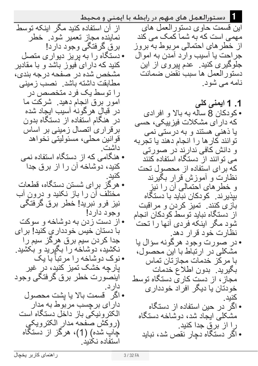 1.3. Sécurité des enfants • Conservez les matériaux d’emballage hors de la portée des enfants. • Ne laissez pas les enfants jouer avec l’appareil. • Si la porte de l’appareil est dotée d’une serrure, gardez la clé hors de la portée des enfants.