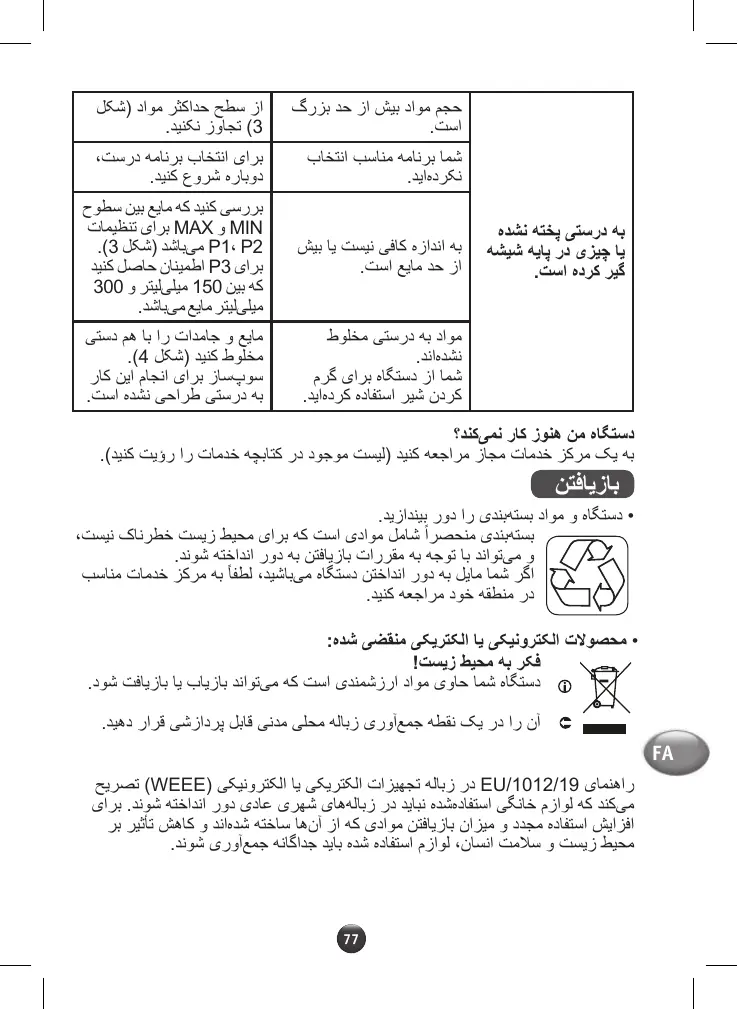 Pour la mise au rebut de l’appareil, se renseigner auprès du service approprié de votre commune. • Produits électroniques ou produits électriques en fin de vie : Participons à la protection de l’environnement ! Votre appareil contient de nombreux matériaux valorisables ou recyclables. Confiez celui-ci dans un point de collecte pour que son traitement soit effectué. La directive Européenne 2012/19/UE sur les Déchets des Equipements Electriques et Electroniques (DEEE), exige que les appareils ménagers usagés ne soient pas jetés dans le flux normal des déchets municipaux. Les appareils usagés doivent êtres collectés séparément afin d’optimiser le taux de récupération et le recyclage des matériaux qui les composent et réduire l’impact sur la santé humaine et l’environnement.