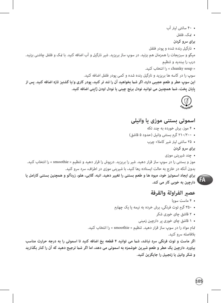Placez tous les ingrédients dans l’appareil à soupe. Sélectionnez le programme « smoothie ».