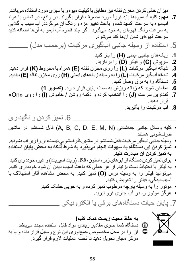 Nettoyer tous les accessoires en contact avec les aliments immédiatement après utilisation à l’eau tiède savonneuse à l’aide d’une éponge. Le filtre peut être nettoyé avec la brosse. Mettre l'appareil à l'arrêt et le déconnecter de l'alimentation avant de changer les accessoires ou d'approcher les parties qui sont mobiles lors du fonctionnement. Une mauvaise utilisation de l’appareil et de ses accessoires peut endommager l’appareil et entraîner des blessures. Le filtre possède des lames coupantes, des précautions doivent être prises lors de la manipulation et du nettoyage. -Afin d'éviter de provoquer des accidents et d’endommager l'appareil, respectez les durées de fonctionnement et les réglages de vitesse pour les accessoires précisés dans la notice. Cet appareil n’est pas prévu pour être utilisé par des personnes dont les capacités physiques, sensorielles ou mentales sont réduites, ou des personnes dénuées d'expérience ou de connaissance, sauf si elles ont pu bénéficier, par l'intermédiaire d’une personne responsable de leur sécurité, d’une surveillance ou d'instructions préalables concernant l’utilisation de l'appareil. Il convient de surveiller les enfants pour s'assurer qu'ils ne jouent pas avec l'appareil. - Avec l'accessoire presse agrume : Cet appareil peut être utilisé par des enfants âgés d’au moins 8 ans s’ils sont correctement surveillés ou si des instructions