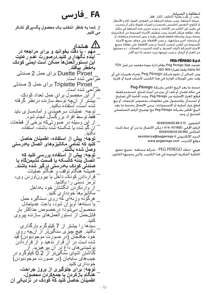 MODE D'EMPLOI DUETTE PIROET PEG PEREGO