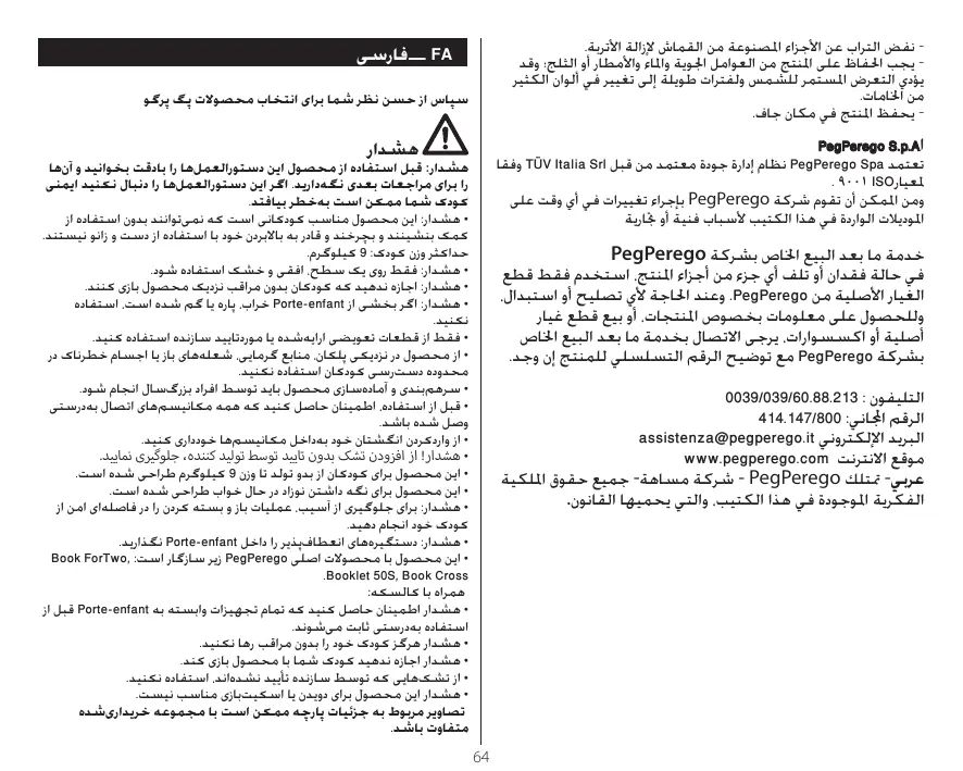 Porte-enfant - کالسکه PEG PEREGO - Notice d'utilisation et mode d'emploi gratuit